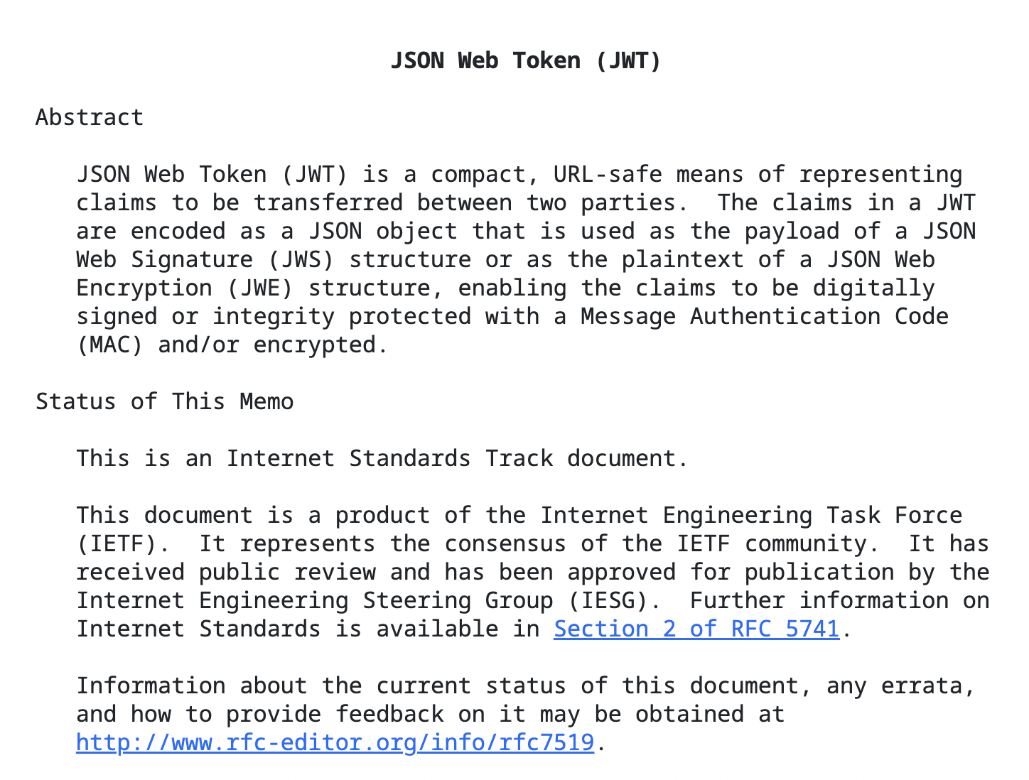 JSON Web Token (JWT) is a compact URL-safe means of representing claims to be transferred between two parties. The claims in a JWT are encoded as a JSON object that is digitally signed using JSON Web Signature (JWS).