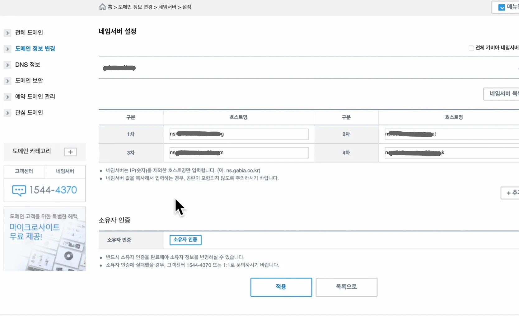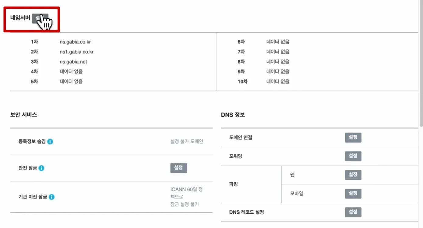다시 Gabia에 접속한 뒤에, NS(Name Server)의 값/트래픽 라우팅 대상을 Gabia에 네임서버에 등록해준다