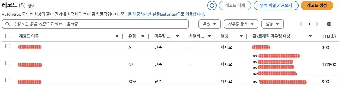 그 다음 앞서 호스팅 영역에서 기본으로 생성된 레코드 확인한다