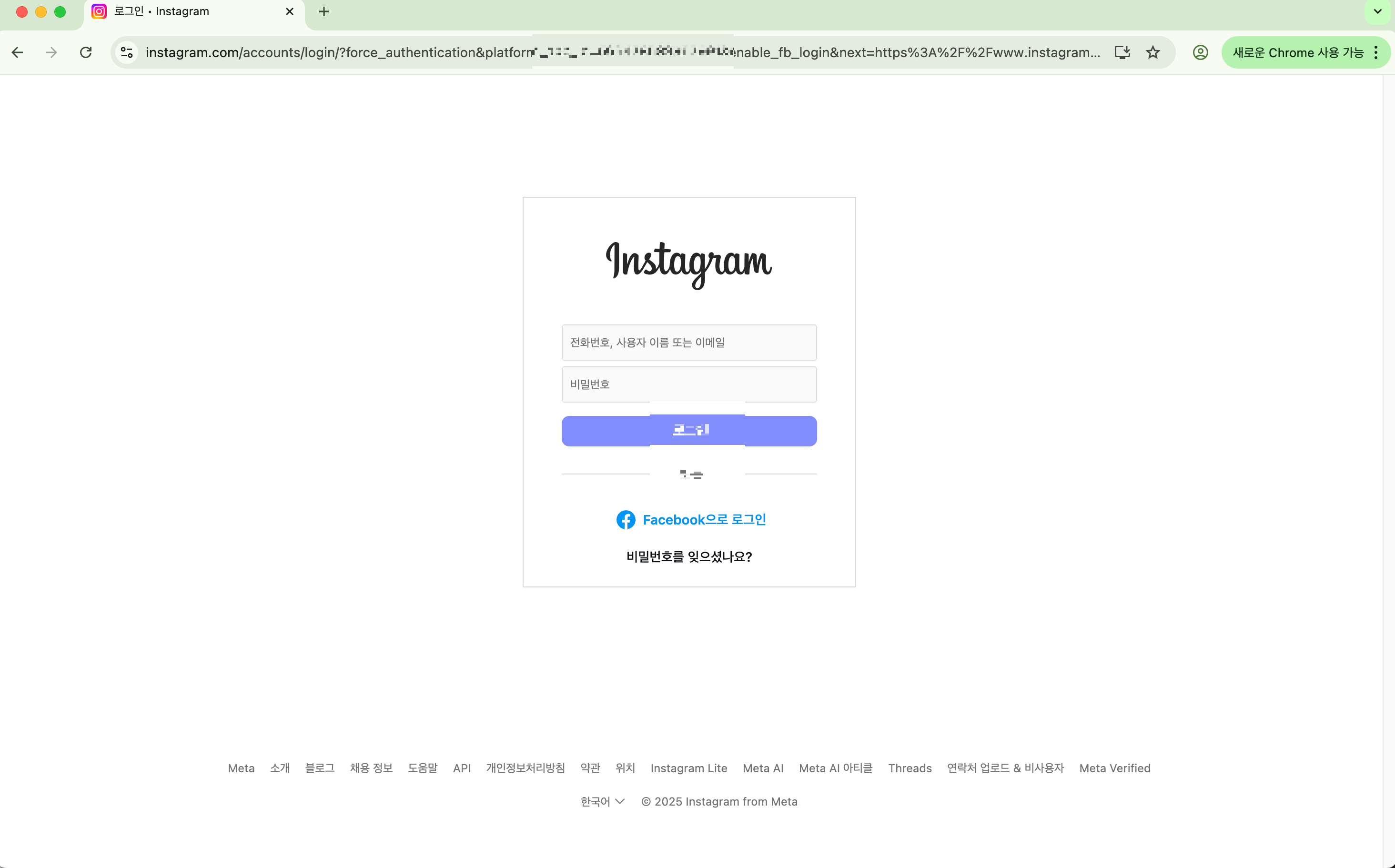 그리고 마찬가지로 Facebook Oauth는 역시나 우리가 알던 Facebook으로 로그인할 수 있는 플로우다. 하지만, 위 화면에서도 알 수 있듯이 Insta로 로그인할 수 없다고 생각해주면 될거같다