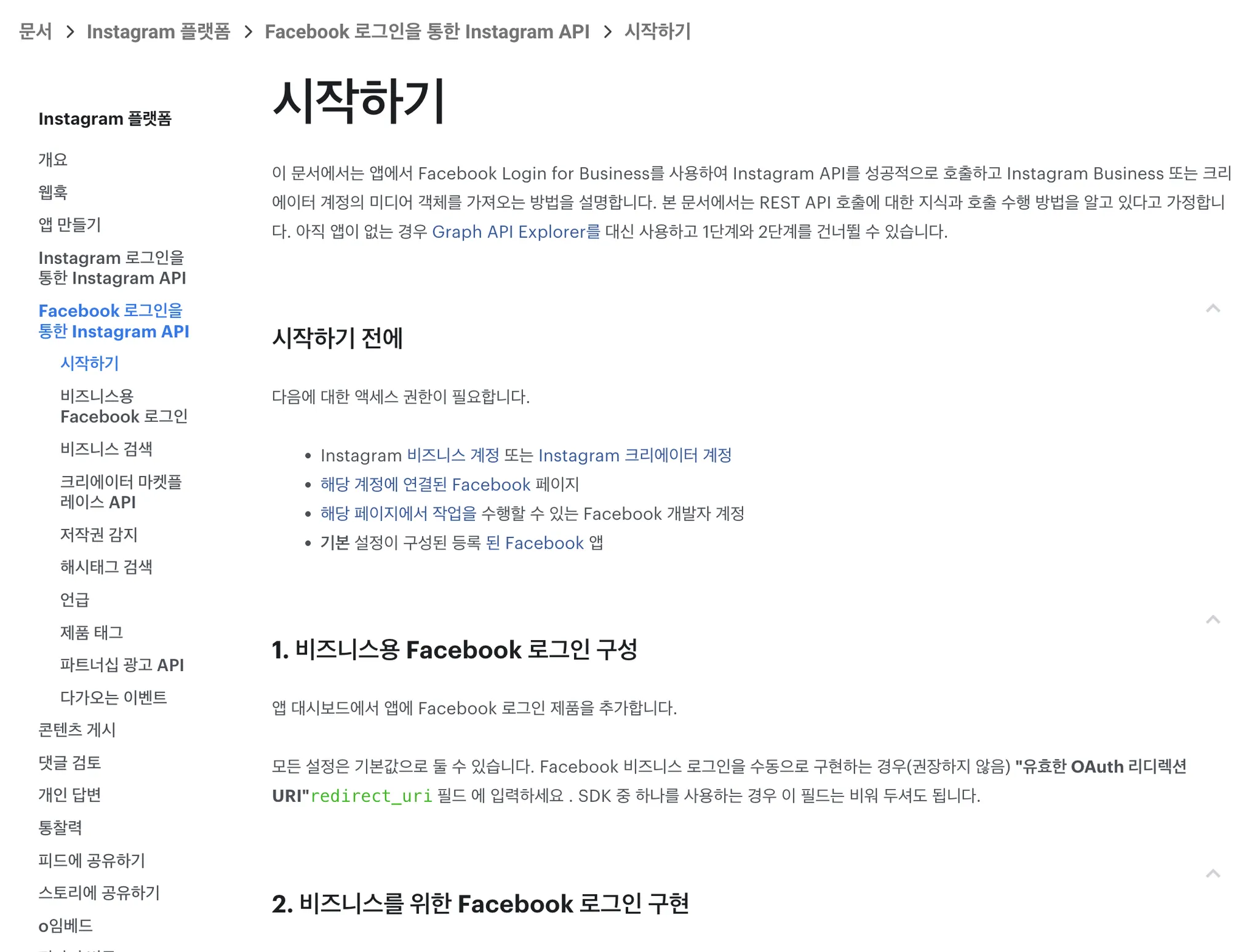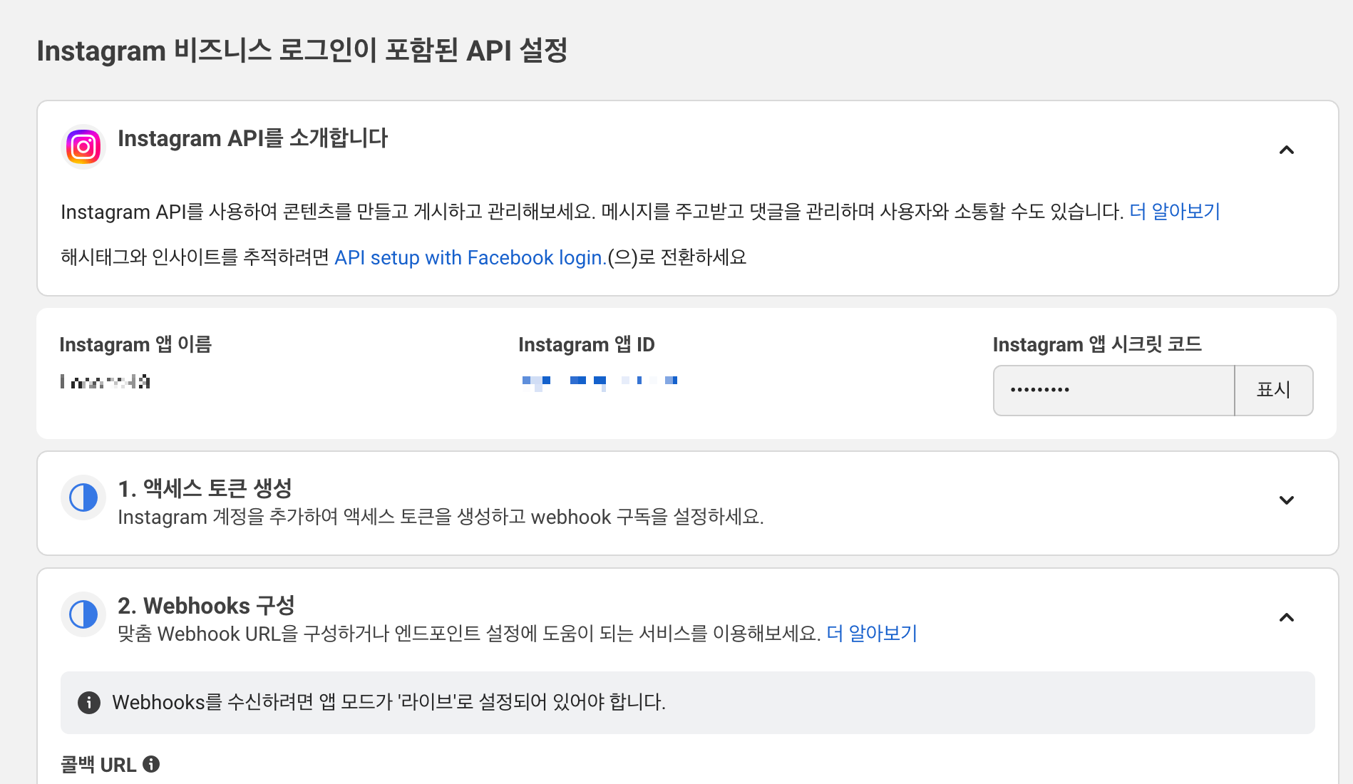 Instagram 비즈니스 로그인이 포함된 API 설정에서 기본 세팅을 진행하면 된다